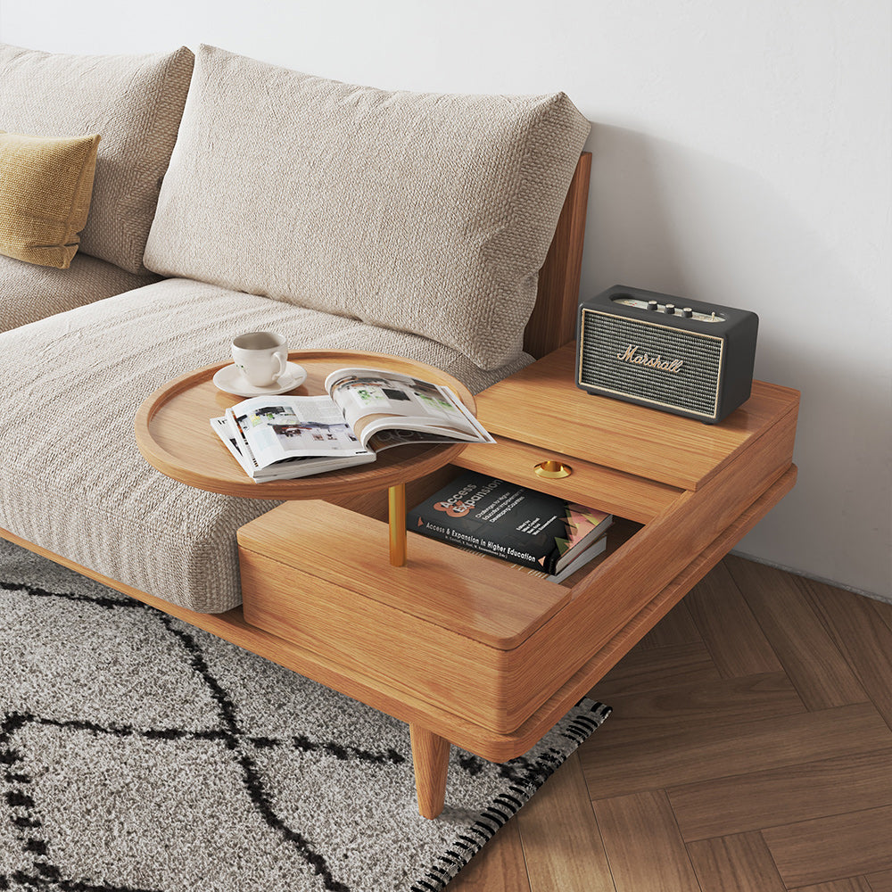 116.3" Beige Cotton Linen 3-Seater Sofa Storage Fabric Sofa with Round Arm