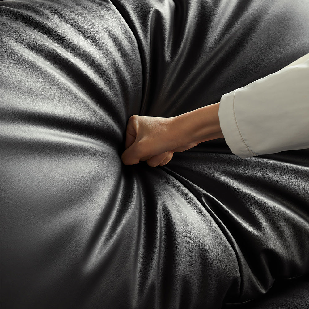 Sink into high-density foam cushions, which offer the perfect balance between softness and firm support. Unlike traditional sofas that lose shape over time, this modern faux leather sofa maintains its plush feel, ensuring a comfortable seating experience for years to come.