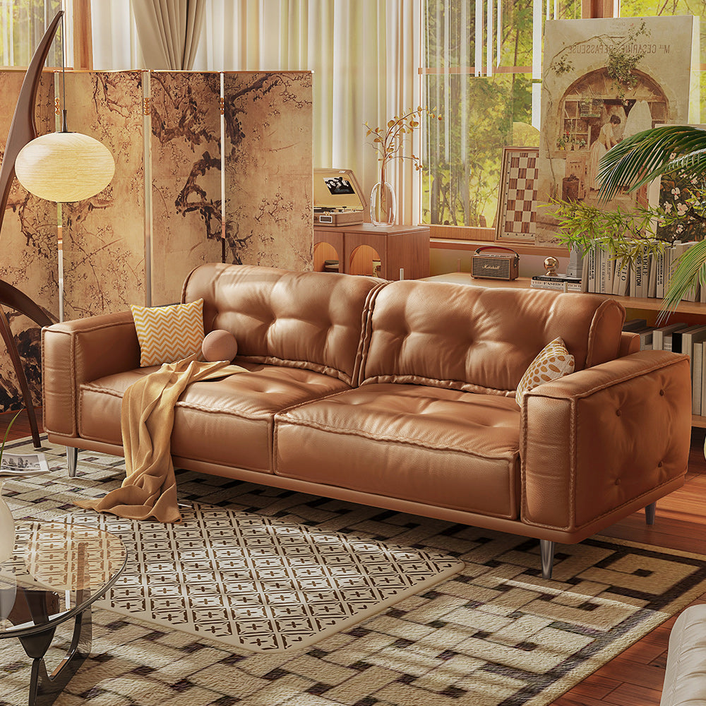 - Premium Genuine Leather: Crafted from large pieces of genuine top-grain leather, this sofa avoids using scrap pieces, ensuring longer durability, superior breathability, and a clear, rich leather texture. It's scratch-resistant, waterproof, and more elastic than regular leather.