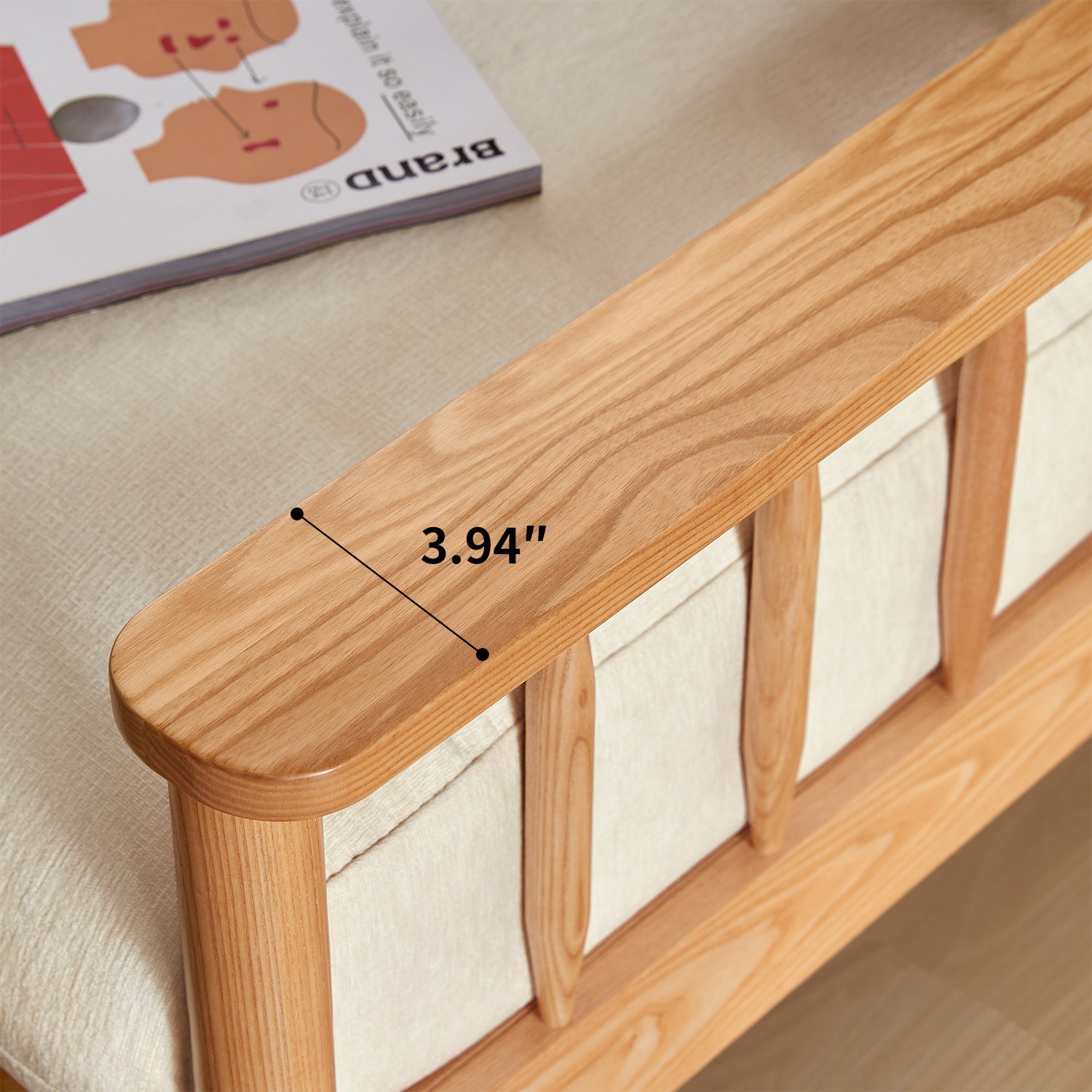 Japandi Solid Ash Wood Sofa Available in Cotton Linen, Corduroy & Cat-Scratch Fabric