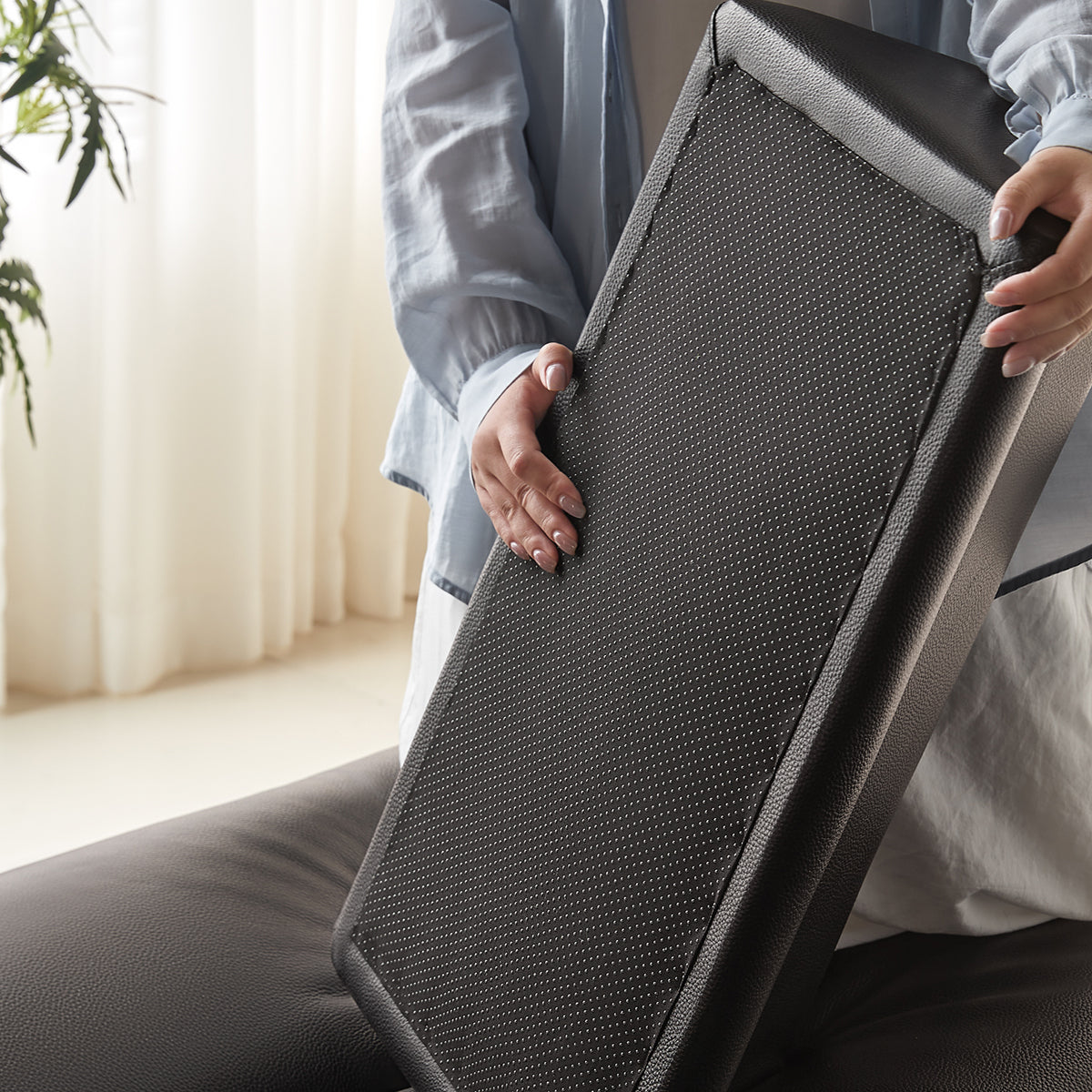 The sofa's backrest features a biomimetic shark fin design, providing both style and ergonomic support. Each back cushion weighs 18 kilograms and is equipped with a non-slip base, allowing you to easily reposition it for customizable seating depth. Additionally, both armrest cushions are adjustable to three angles, enhancing relaxation and usability.