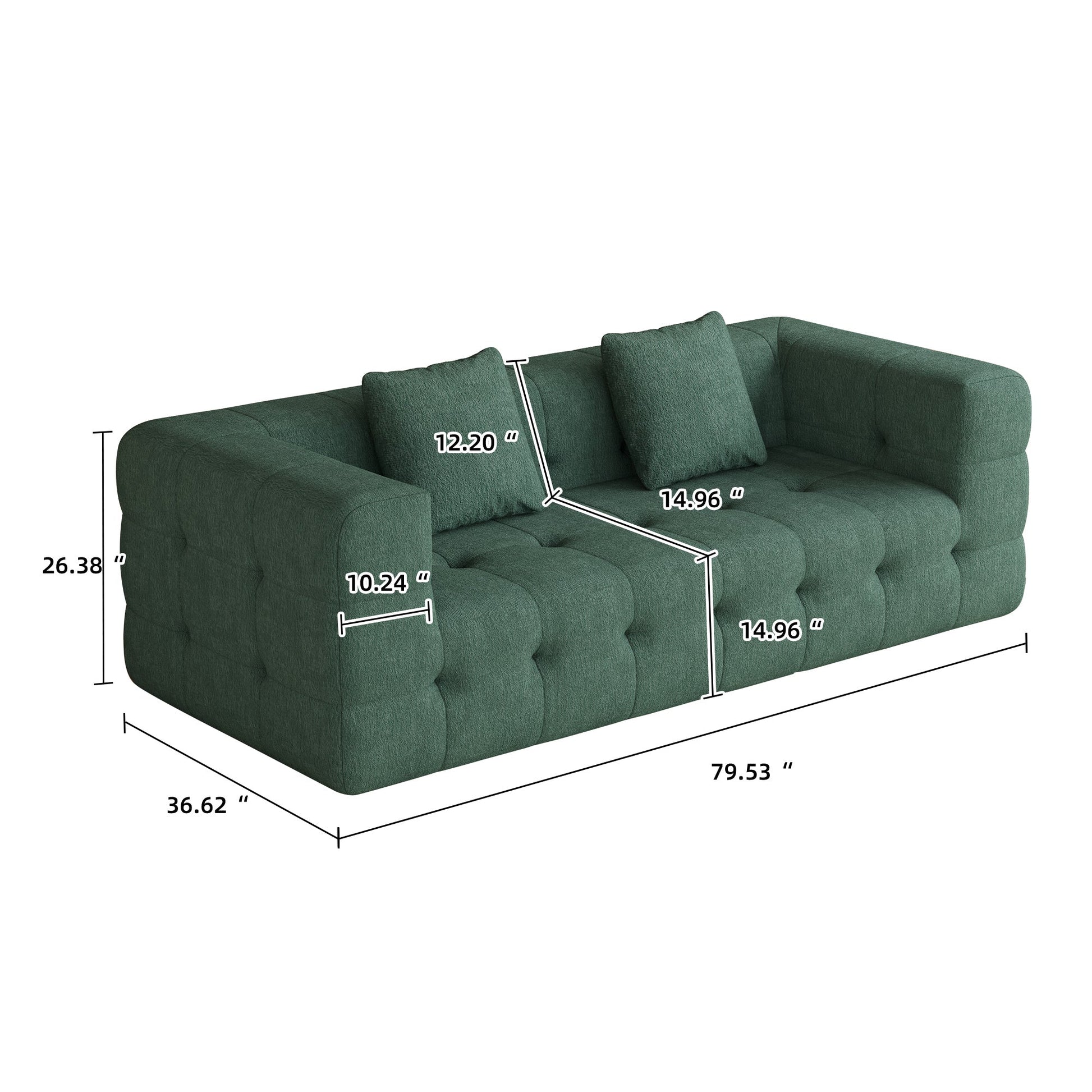 WEHOMZ Modern Green Love Seat Sofa with Chenille Velvet Fabric, wear-resistant and anti-scratch, not easy to pilling, long-lasting beauty and easy to take care of. Filled with high resilience compressed sponge, it provides stable support and comfortable sitting feeling, and does not collapse after sitting for a long time. The sofa comes with two pillows in the same color to increase comfort and decorative effect, making it an ideal furniture choice for living rooms, bedrooms and leisure spaces.