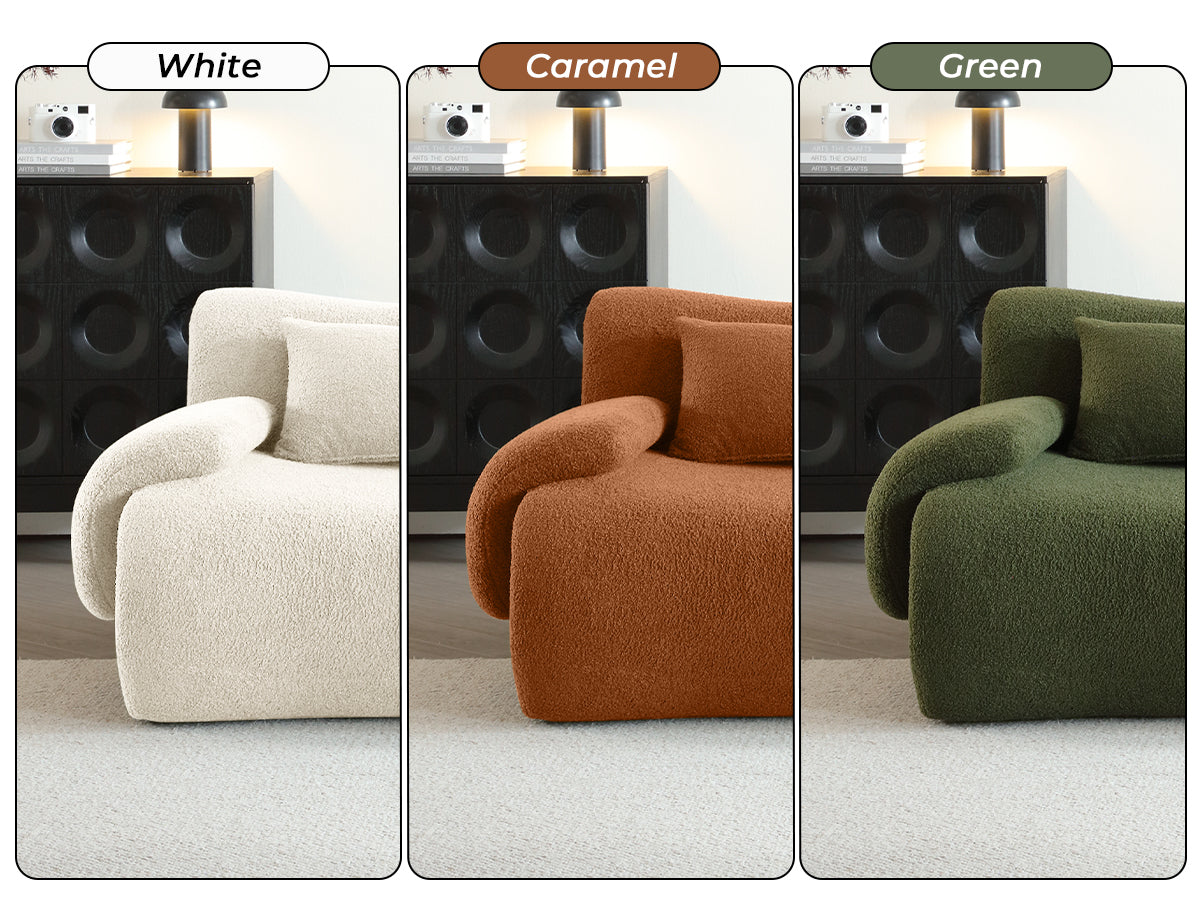 Upholstered in premium teddy velvet, this sofa combines visual appeal with a soft, cozy texture. The fabric is breathable, scratch-resistant, and wear-resistant, making it both comfortable and durable for daily use. -