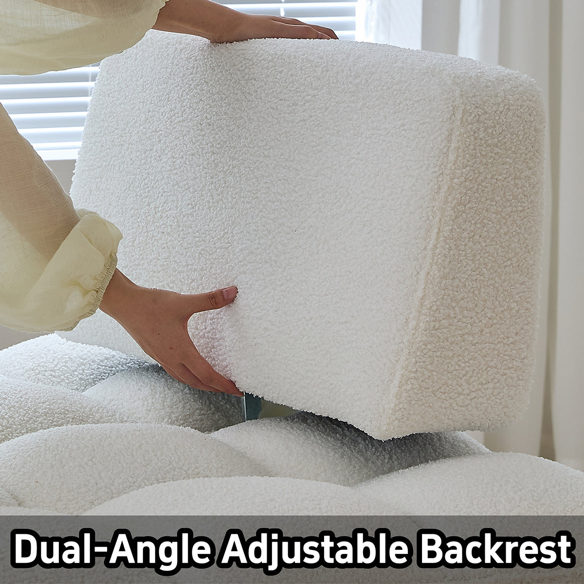 WEHOMZ Teddy Fleece Lounge Sofa Bed – Cream White Convertible Comfort for Modern Living