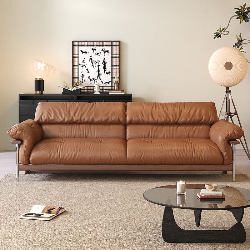 Three-Seater Sofa with Straight-Line Design & Top-grain Leather Upholstery